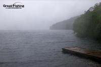 早朝から雨と風の厳しい天候・・・5月下旬から6月初旬にかけて約1週間程度続いた高気温(25〜30℃)の影響で、表層の水温が例年に比べ4〜5℃と高く15℃。しかし水深(3〜5m)の水温は11℃以下でイワナの適水温になっています。ミヤベイワナのヒットが一番多いのも水深(3〜8m)の範囲。岸からのキャスティングでは、ボトムまでルアーを沈めてからリトリーブして、中層あたりでヒットが多いようです。また岸近くのヒットはサクラマス(25〜40cm)、岸から離れた場所ではミヤベイワナ(25〜40cm)が釣れています。