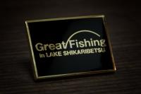 オリジナルロゴのピンバッジができました。グレートフィッシング然別湖の催期間中のみ受付事務所で販売しています。(ブラック&ゴールド限定数 : 300個)