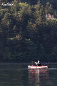 湖中央周辺では回遊型の大型ニジマス(ブルーバック)が釣れています。ヒットレンジはミヤベイワナより浅い水深(約5m)。