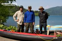 久しぶりの晴天に恵まれた然別湖。爽やかな風を受けて湖で釣りをするのはとても気持ちのいいものです。しかしミヤベイワナは晴天になると、さらに深場へ潜る傾向があります。そうなるとルアー、フライともタナをしっかりキープすることが困難になり釣り人は悪戦苦闘。水深10m以下の深場に完全に下がってしまった場合はルアーは10〜20gの重いものがおすすめですが、なかなかフックアップしなかったり、バレが多いときなどは軽めのルアーに交換してみましょう。フライでは、シンキングライン(タイプ6〜8)を使わなければなかなかミヤベイワナをヒットさせることができません。ポイントはうぐいす湾中央、音更湾中央、禁漁境界線中央付近など水深のある場所が良く釣れています。トローリングは連日好調。サクラマス(35〜40cm)は音更湾岸釣りエリアでフライ(ストリーマー)でヒットしています。