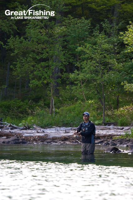 然別湖には、虹色岬、シャクナゲ岬、イワナ岬、アイサ岬、思い出岬の5つの岬があります。岬周辺は風が入り込み安く、水も良く動くので、大型(50〜 60cm)ニジマス、サクラマス、ミヤベイワナの約半数近くは岬周辺で釣れています。風ウラには、陸生昆虫や水生昆虫も貯まりやすいのでこれからのシーズンはチェックが必要です。