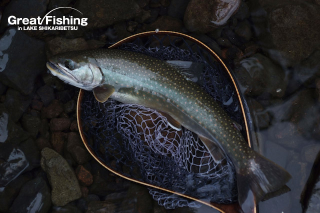 少しですがブルーバックのミヤベイワナが釣れだしました。ミヤベイワナの3色(ブラウン、グリーン、ブルー)が釣れるチャンスは一年を通じて今だけです。今まで1日に3色すべて釣れた人は極少数。一度トライしてみてはいかがでしょう。