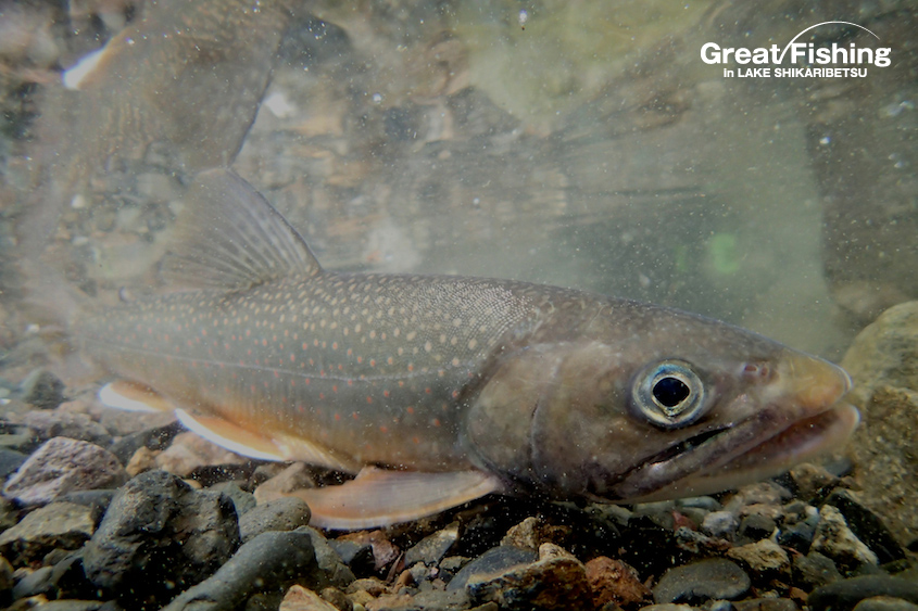 ミヤベイワナは、イワナ岬周辺(11)〜湖中央境界線付近(12)で良型ミヤベイワナ(34〜39cm)が好調。スプーン10g(青/銀)をキャスティングして約30秒カウントダウン、深場をスローリトリーブして良型がヒット(前澤さん/札幌市)。湖中央ポイント(19)では、スプーン10g(チャート/金)をカウントダウン約15秒、水深(5〜6m)でよく釣れています。今日の最高釣果は27匹(吉田さん/帯広市)。