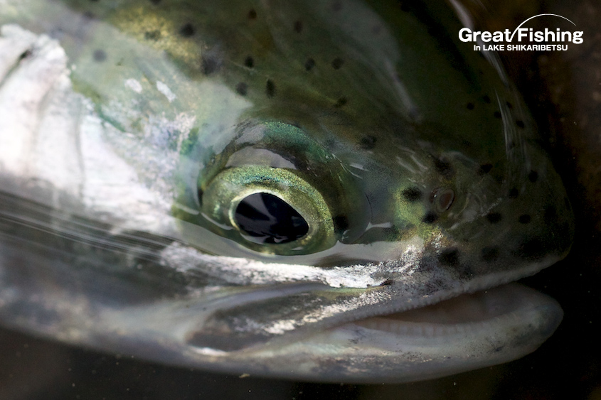 今日のビッグワン ニジマス60cm(芳山さん/函館市)然別湖ガイドマップ