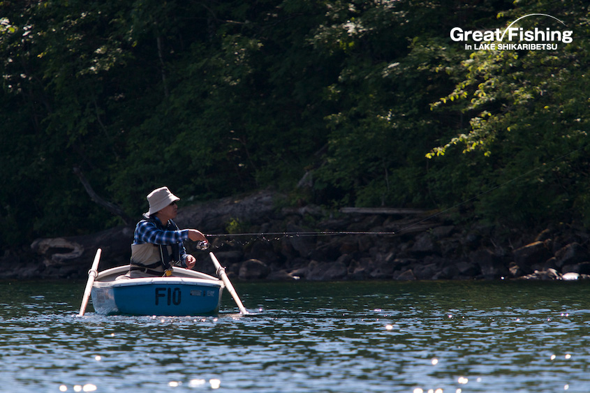 アイサ岬、音更湾北側ワンド、音更湾インレット、シャクナゲ岬で、大型ニジマス(40〜48cm)がドライフライで釣れています。ヒットフライは(#12アダムスパラシュート、#10エルクヘヤーカディスなど)音更湾のかけ上がりでは、ルアー(スプーン)をトローリングしてニジマス(47cm)ヒット。全体的にライズは少なく、ドライフライのヒットはブラインドの場合が多いようです。ミヤベイワナのヒットレンジは水深(5m)前後がもっとも多く、スロースピードのトローリングが効果的。今日の最高釣果は14匹(玉利さん/函館市)。