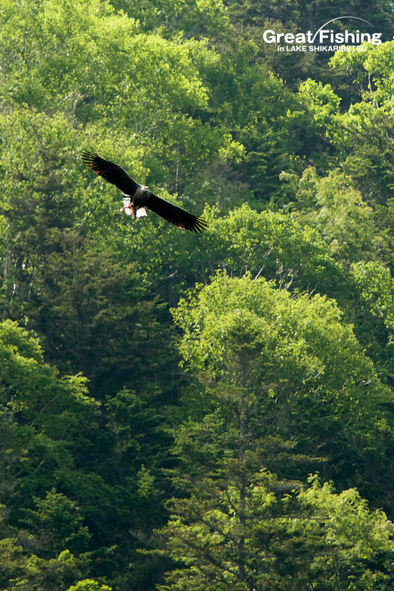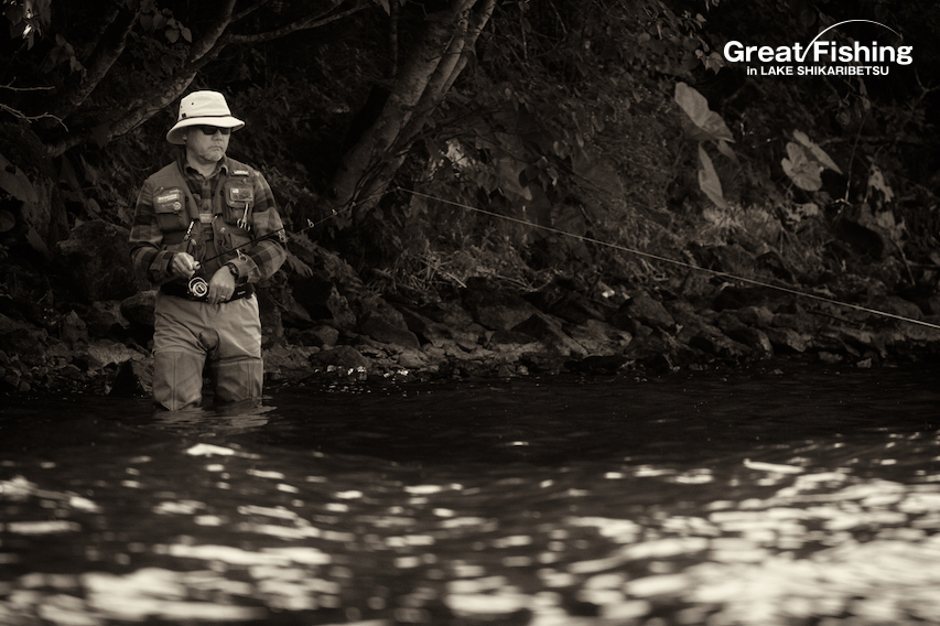 午前10時30分〜午後1時30分頃まで音更湾インレットでは#10エルクヘヤーカディスでミヤベイワナ(25〜30cm)、サクラマス(28〜35cm)、ニジマス(30〜40cm)が多数ヒット(斉藤さん/東京都、村上さん/弟子屈町)。50cmクラスもヒットしたようですが木の下へ潜られて惜しくもバレ。取水口周辺[17]ではテレストリアル系のドライフライでニジマス(40cm)がヒット(野口さん/千葉県)。思い出岬[15]では#8ゾンカー(オリーブ)でニジマス(48cm)が釣れています(山根さん/神奈川県)。湖中央[20]ではシンキングタイプⅡ+ウーリーバガー(黒)でミヤベイワナ(25〜35cm)が水深(0〜1m)で13匹ヒット(伊藤さん/帯広市)。今日の最高釣果は32匹(八木さん/静岡県)。