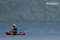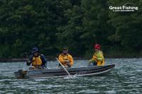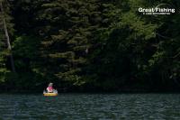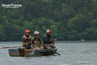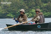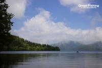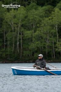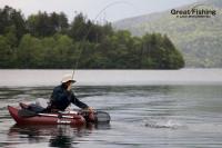 ボートからかけ上がり周辺にドライフライを丁寧にキャスティングして、ミヤベイワナ(20〜25cm)、サクラマス(25〜32m)、ニジマス(22〜45cm)合計で51匹ヒット(長嶋さん/神奈川県)。うぐいす湾奥[4]では大型ニジマス(46cm)が#10エルクヘヤーカディスでヒット(三浦さん/神奈川県)。ミヤベイワナ(25〜30cm)はシンキングラインタイプⅣ+フラッシュバックニンフ(オリーブ・ブラウン)で17匹(川尻さん/埼玉県)など。湖中央[18][19][20]ミヤベイワナのヒットレンジは水深(3〜10m)。今日の最高釣果は70匹(長嶋さん/神奈川県)