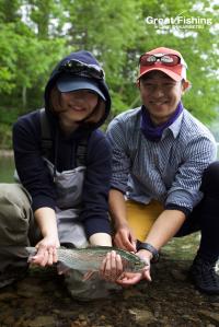 今シーズンは例年に比べてニジマスのヒット数が非常に多いようです。サイズは(25〜45cm)と小ぶり。ヒットフライは#10〜#12テレストリアルやエルクヘヤーカディスなど。