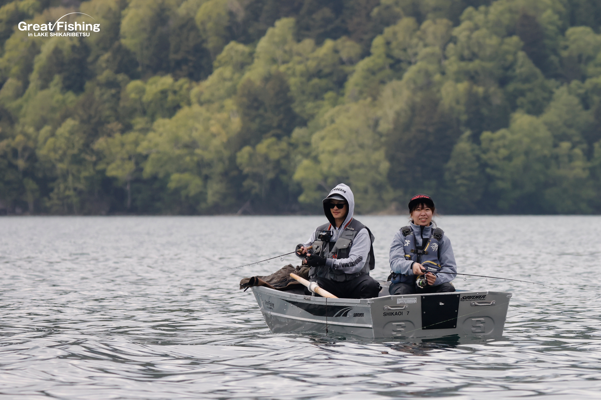 1の湾⑲で大型ニジマス(55cm)、2の湾⑰で大型ニジマス(40cm)、湖中央㉓では大型ミヤベイワナ(40cm)が(シンキングラインタイプ4+#8ウーリーバガー/ブラック)をゆっくりハーリングしてヒット、(林さんペア/札幌市)。唐沢湾岸釣りエリアでは大型ニジマス(50cm)が(プリンスニンフ)でヒット(星野さん/札幌市)ほか。
