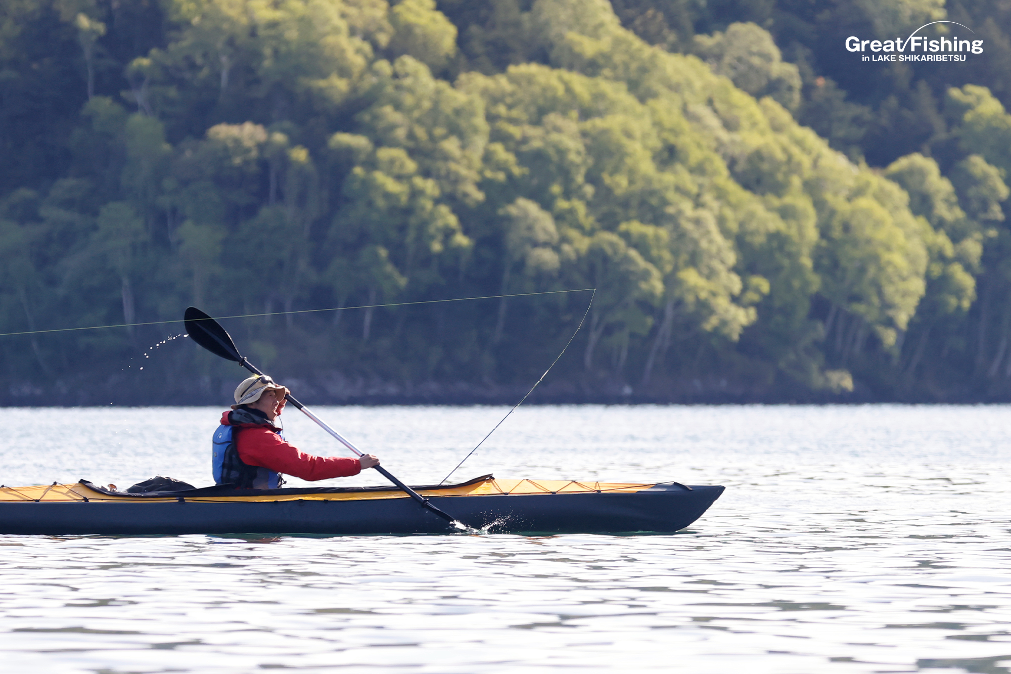 ミヤベイワナ(27〜40cm)は湖中央㉓㉔㉕の水深(1〜3m)で(シンキングラインタイプ2+#6ストリーマー)に8匹、ニジマス(35cm)、サクラマス(20〜25cm)5匹ヒット(山畠さん/札幌市)。うぐいす湾沖ではミヤベイワナ(20〜45cm)が(シンキングラインタイプ5+シンクティップ+トトモビール)で15匹ヒット(荒井さん/佐賀県)。境界線㉕周辺ではミヤベイワナ(25〜35cm)が(ストリーマー/ブラック)で15匹、回遊型の大型ニジマス(50cm)がヒット(井上さん/東京都)ほか。