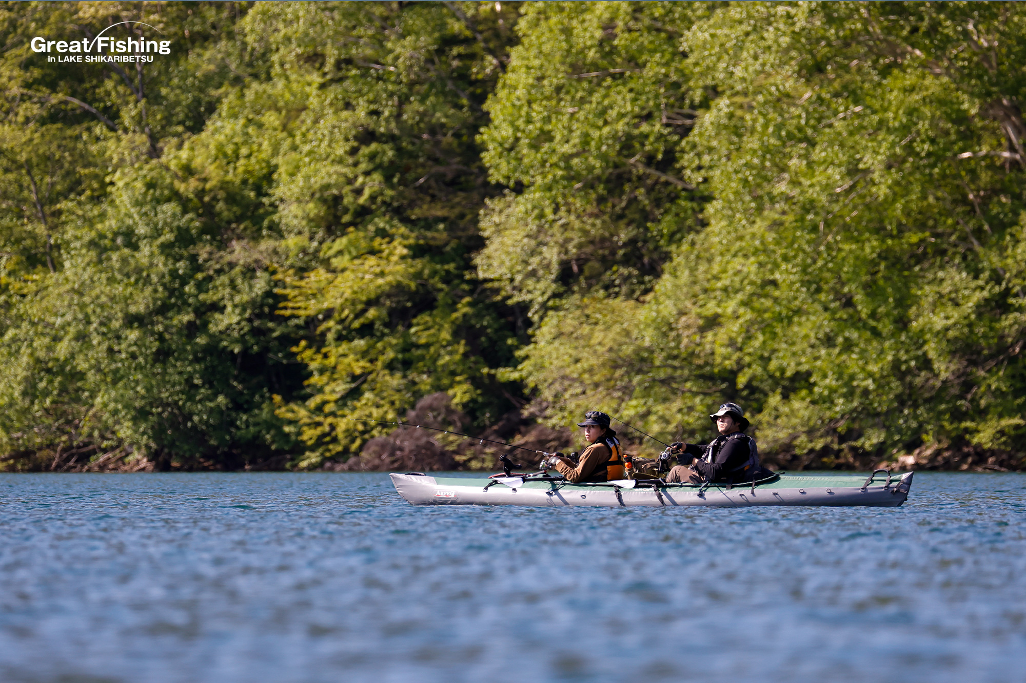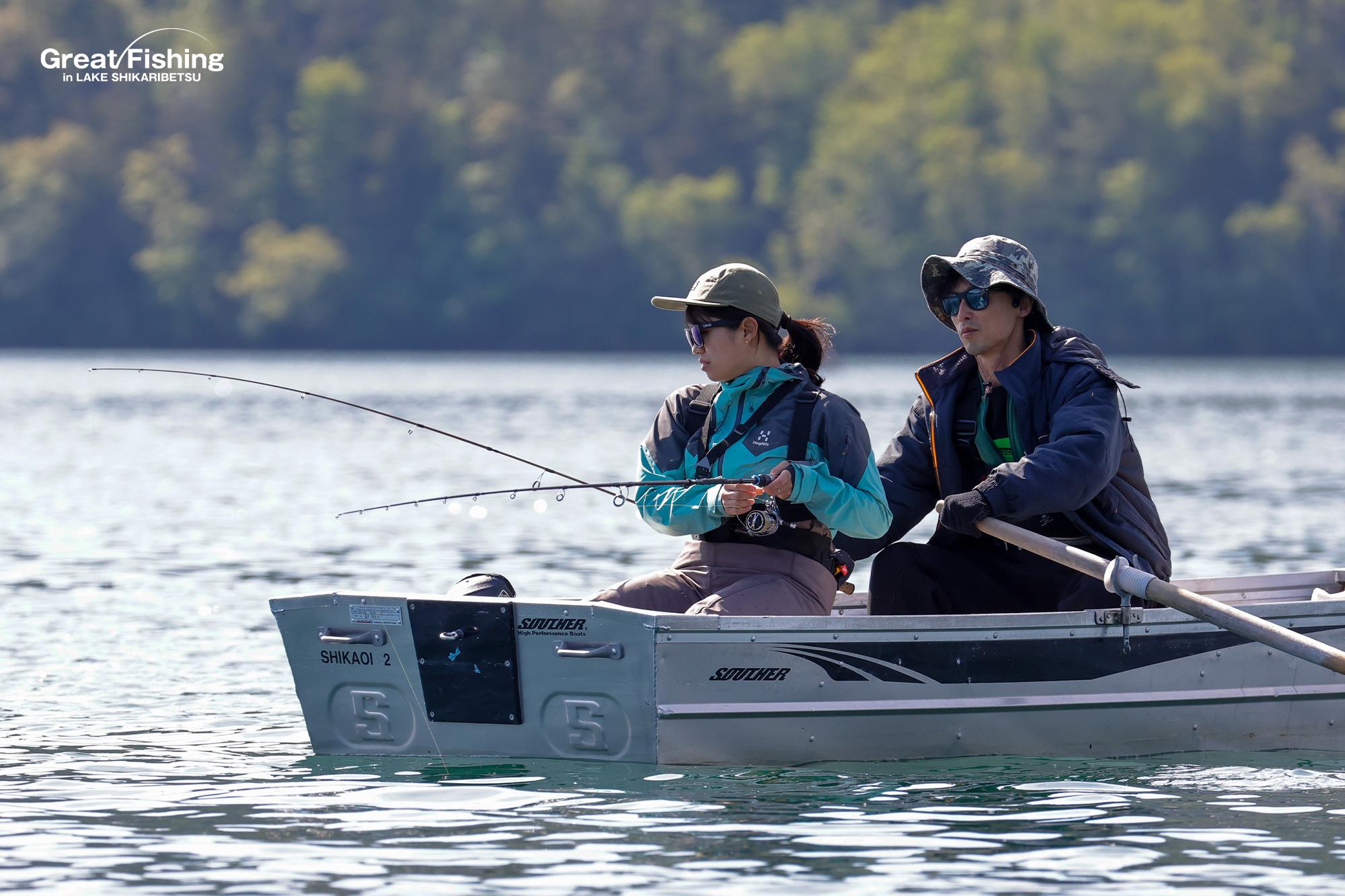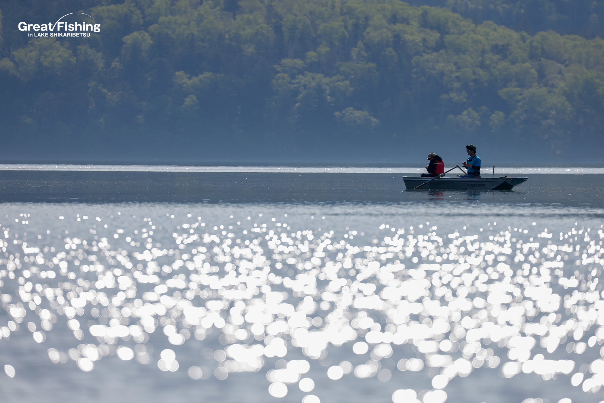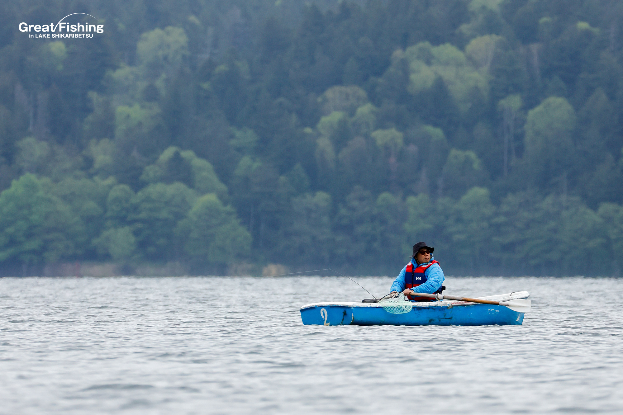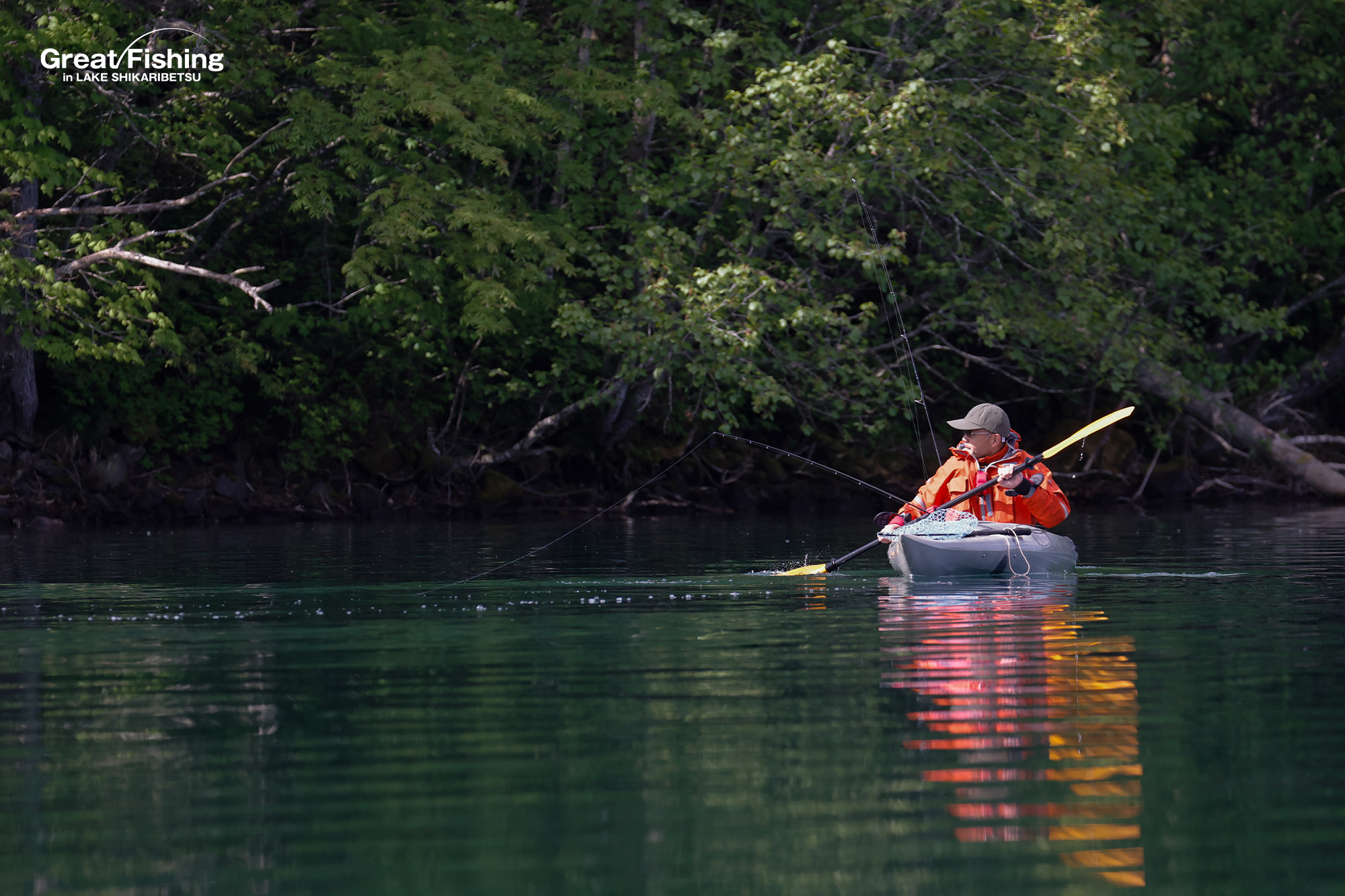 音更湾沖周辺㉔、境界線中央周辺㉕、イワナ岬⑬周辺で、ミヤベイワナ(25〜33cm)17匹、そのうち11匹がキャスティング&リトリーブでヒット(伊藤さん/札幌市)、ヒットルアーはスプーン7〜10g(黒/シェルなど)、ヒットレンジは(5〜10m)。虹色岬③周辺、シャクナゲ岬⑦周辺、湖中央周辺㉓で、ミヤベイワナ(18〜28cm)5匹ヒット(横山さん/幕別町)、ヒットルアーはスプーン7g、ヒットレンジは水深(2〜3m)ほか。