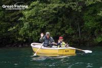 ミヤベイワナ(25〜35cm)は、イワナ岬沖、アイサ岬沖、シャクナゲ岬沖、湖中央の水深(3〜7m)でタナに当たると良く釣れるようです。サクラマス(30〜35cm)は、うぐいす湾、シャクナゲ岬で釣れていますが釣果は少数。