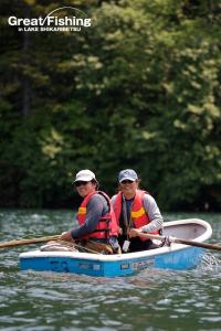 ミヤベイワナ(20〜35cm)のほとんどは(7〜10m)の深場でヒットしていますが、かなり難しい釣りになっています。今日の最高釣果は14匹(小原さん/札幌市)。ヒットするポイントは、1の湾、湖中央、虹色岬沖、音更湾中央など。