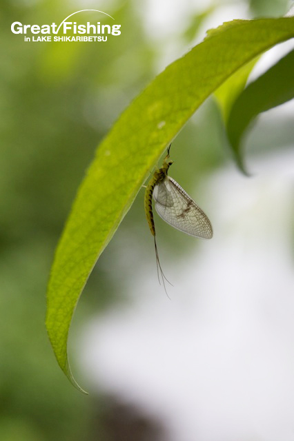 晴天に恵まれた然別湖では、水温が13℃まで上昇。うぐいす湾でモンカゲロウのハッチが始まりました。ハッチははまだ極少数でしたが、今後、水温が上昇すればハッチは多くなります。モンカゲロウが良くハッチするポイントは、うぐいす湾奥、音更湾奥、シャクナゲ岬周辺、虹色岬、1の湾砂場ワンド。例年は水温が(14〜15℃)でハッチはピークを迎えます。大型ニジマスが岸際でライズするのが楽しみです。