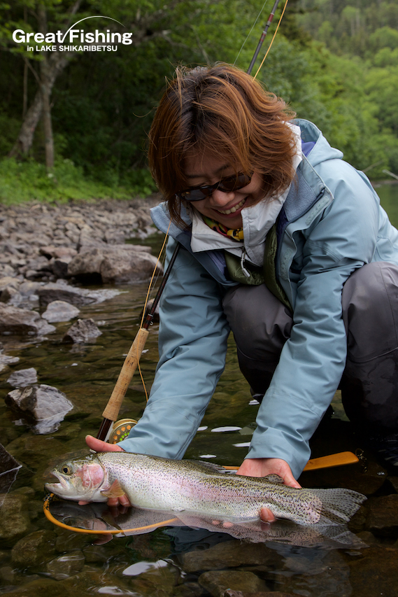 今日のビッグワン ニジマス53cm(斉藤さん/札幌市)然別湖ガイドマップ