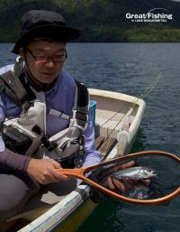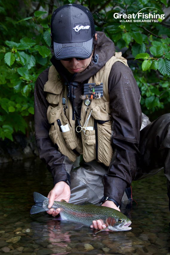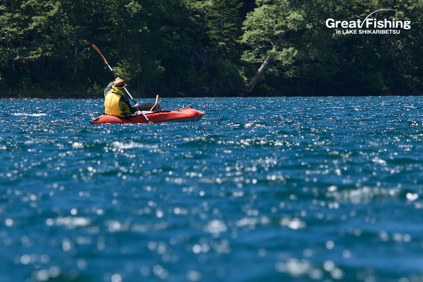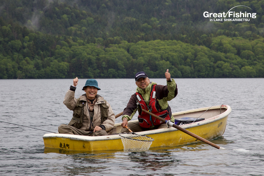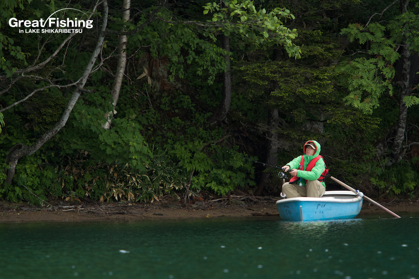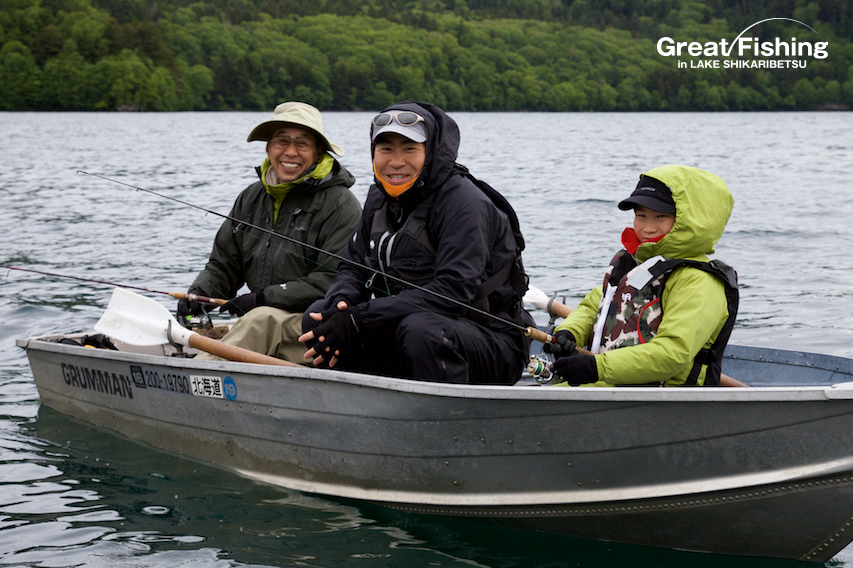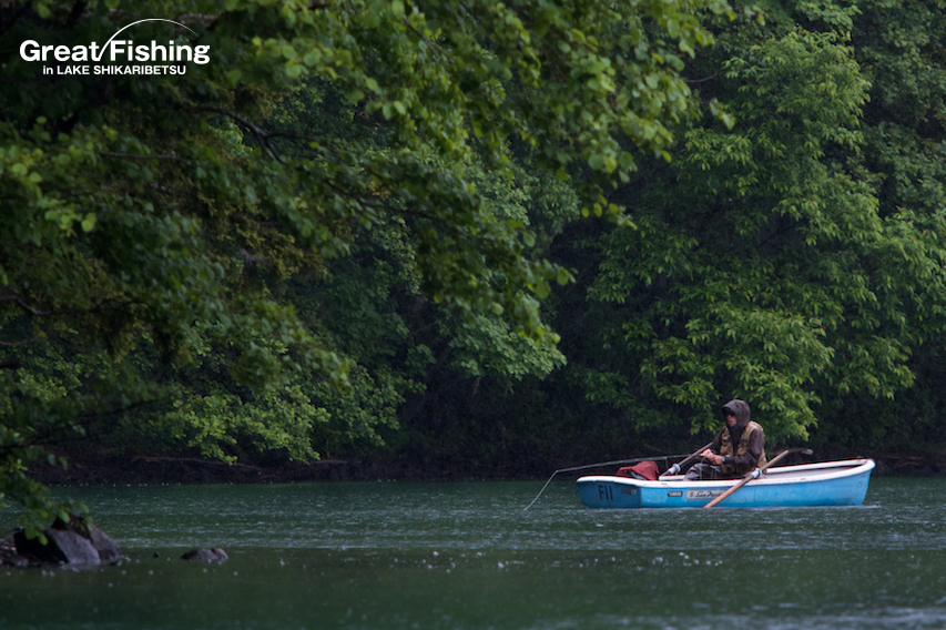 雨の影響でミヤベイワナのヒットレンジは浅く、シンキングラインタイプⅡ+マラブー(黒)をハーリングして水深(1〜3m)で9匹ヒット(小松さん/栃木県)今日の最高釣果は11匹(坂さん/札幌市)。