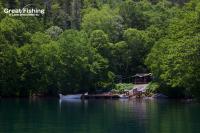 雨が降り続く中、ニジマス、サクラマスの活性は非常に高くドライフライ(#10ライツロイヤル、#10エルクヘヤーカディスなど)に好反応。湯の花岬周辺[14]ではモンカゲロウのハッチと同時にニジマスのライズがあり、ニジマス(37cm〜43cm)、思い出岬周辺[15]では50cmクラスを手元まで引き寄せた後に惜しくもバレ。ニジマスワンド[16]では30cmクラス、取水口周辺[17]ではサクラマス(34cm〜42cm)、ニジマス(50cm)合計で11匹のヒット(坂さん/札幌市)。その他、エルクヘヤーカディスやウーリーバガーでサクラマス(28〜30cm)が釣れています。ルアーでは(スピナー6g)をかけ上がりに対して真横にキャストしてニジマス(50cm)が釣れています(尾籠さん/帯広市)。