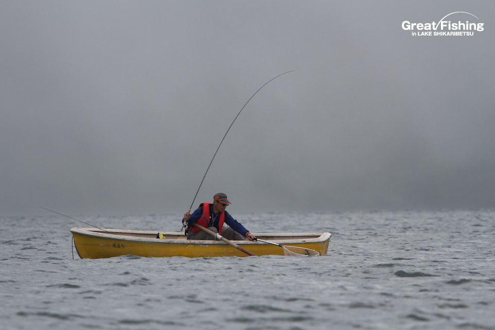 気温9℃〜10℃。冷たい雨が降り続き、一瞬、強風も吹く、厳しい一日になりました。ミヤベイワナ(25〜32m)は、(シンキングライン4〜6)+(#8マラブー)で水深5mをハーリングして21匹ヒット(塩沢さん/静岡県)。(スプーン/黒・赤)水深(5m)で(26〜32cm)8匹(因さん/札幌市)。(スプーン7g/赤・金、シンキングミノー/ピンク)水深(4〜7m)で(25〜35cm)8匹(友田さん/札幌市)他。