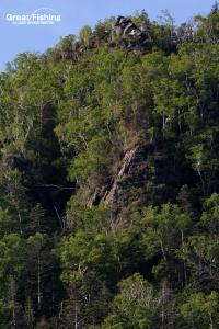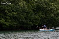 午前10時30分頃から、暗い曇り空から、周囲が明るくなる薄曇りに変わると、うぐいす湾奥ポイント④、カルガモ岬周辺⑤、シャクナゲ岬周辺⑥で、ニジマス(25〜46cm)がドライフライに9匹ヒット(勝田さん/神奈川県)。ヒットフライは、#10スパイダー。午後1時30分頃には、うぐいす湾奥ポイント④でライズを見つけて、ドライフライ(#16アダムスパラシュート)で、ニジマス40cmが釣れています(平野さん/静岡県)他。