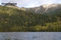 音更湾の奥中央付近でニジマス(40cm)がフライで釣れています。ヒットしたフライは8#ゾンカー(黒またはオリーブ)。岸から8〜12m離れた水深5〜6mでアタリがあるようです。岸近くではあまりヒットは無いので、ロングキャストできるスペイやスカジットが有効。同じく岸釣りエリアでミヤベイワナ(41cm)がルアーで釣れています。ヒットゾーンは岸から20〜30m沖のべた底付近です。ボートからのキャスティングまたはトローリングでは水深15mが一番良く釣れているタナでした。今日は全体的に釣果は渋く、タナを確実に合わせた場合のみ10〜15匹の数釣りができます。ミヤベイワナが群れる場所はその日によって変わるので、湖中央付近を広めに探ることが大切です。