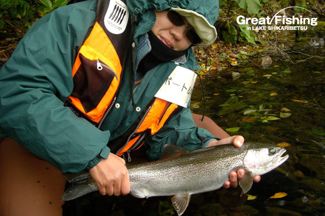 今日のビッグワン ニジマス52cm(虹色岬)天野さん/岩見沢市然別湖ガイドマップ