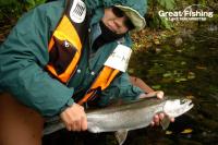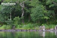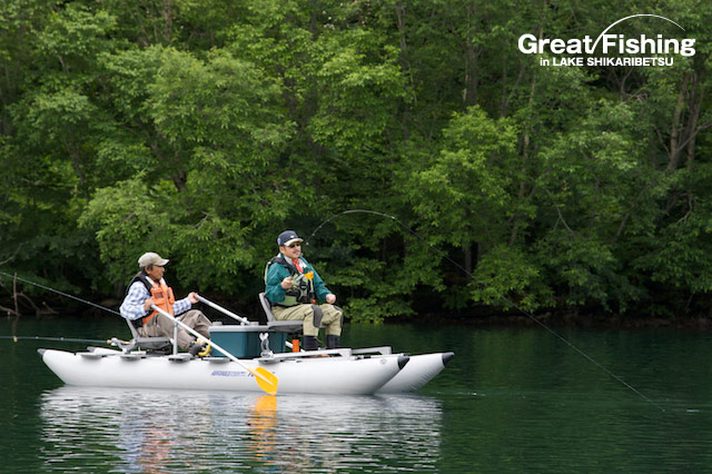 2008年度のファーストステージは何と言っても大型のミヤベイワナ(40〜45cm)がこれまでに無く数多く釣れたことでした。また、サクラマス(30〜45cm)、ニジマス(35〜60cm)共に解禁当初から好調で、魚たちの活性が早い時期から高かったように思います。しかし今年は大雪山系の降雪量が非常に少なく、また湖の氷も例年よりも早く解氷したこともあり、水温上昇のペースが非常に早く後半戦のニジマス狙いは厳しい状況となりました。ちなみに昨年7月14日の水温は16℃。本日の水温は19℃で昨年より3℃も高い水温でした。これも温暖化の影響なのでしょうか・・・。
