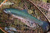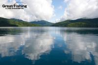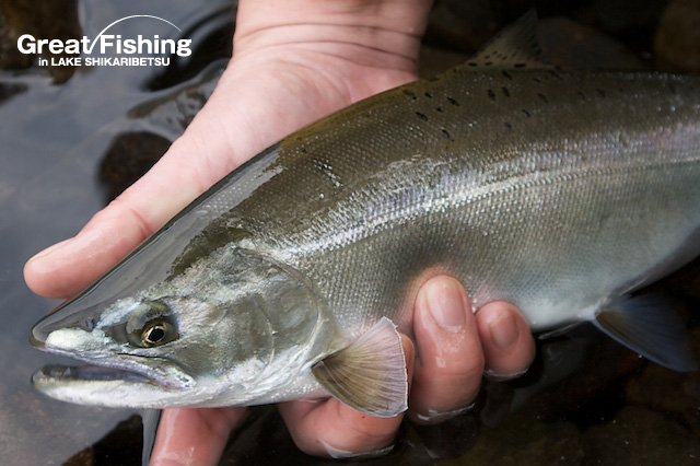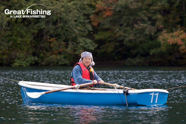 湖の中央ポイントでミヤベイワナが水深10m前後で釣れています。キャスティングでもトローリングでも釣れますが、数釣りを楽しむのならトローリングが有利。14〜18gのルアーをタナまで沈めてゆっくりゆっくりボートを漕げばアタリが取れます。アタリがあっても合わせずにリールを巻きながらフックアップさせるとヒットします。釣れるミヤベイワナ(30〜40cm)は、グリーンバックが多く、型は小さいですが(25〜30cm)のブルーバックも少し釣れています。
