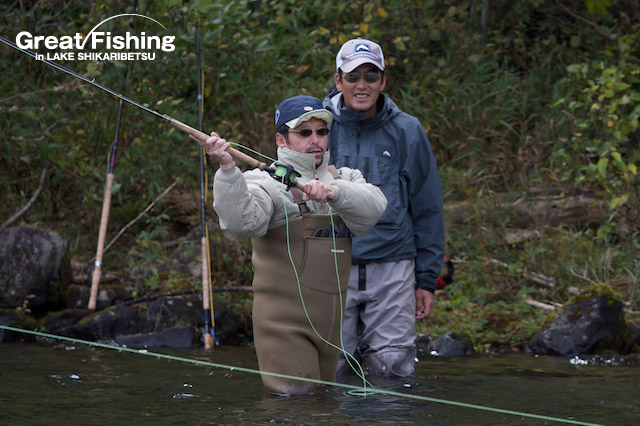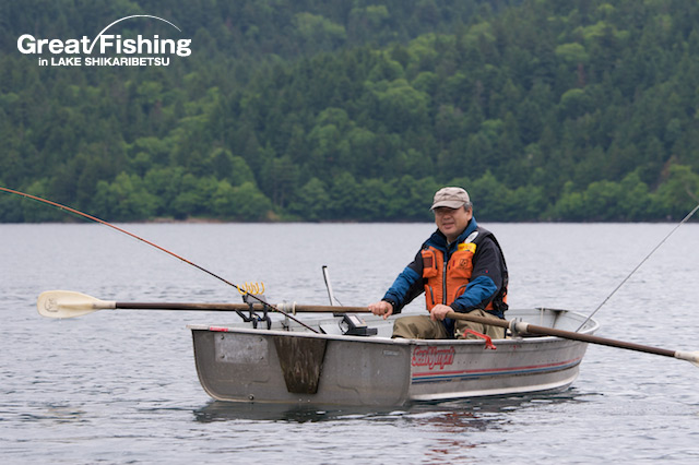 三重県からお越しの石川さんはこれまでミヤベイワナ以外のすべてのトラウトを釣り、今日然別湖でミヤベイワナを釣れば「すべてのトラウトを制覇」。ここ3日間はミヤベイワナのタナが深くフライで釣ることが少し困難な状況ですが、苦労の末、念願のミヤベイワナを釣ることができました。長年の夢が叶ってよかったですね!