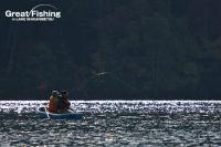 今日は曇りから次第に小雨に変わり、午後になっても気温は10℃と寒い一日になりました。ミヤベイワナ(20〜46cm)が湖中央[18][19][20]、取水口周辺[17]で良く釣れています。1〜3mの浅い水深でヒットするタイプは(20〜35cm)。7m〜10mの深場では(40〜46cm)の大型のミヤベイワナが少数ですが釣れています。ボート移動中のトローリングでは、ミヤベイワナの群れに当たると数多くのヒットがあり。岸周辺の掛け上がりでは、サクラマス(20〜30cm)が連日良く釣れています。全体の釣果は一人(0〜5匹)今日最高の釣果は23匹(岡元さん/愛知県)