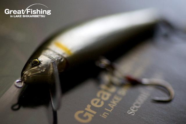 今日で解禁3日目。ミヤベイワナがスプーンに少しづつスレてきているようです。当たりはあるのにヒットしない、チェイスだけ…など、釣果がイマイチ上がらない時などに「シンキングミノー」が効果があるようです。写真(2番目)のハンドメイドミノー(レッドブレスト/アユ)ヘビーシンキングで、午前7時〜9時頃までにうぐいす湾沖合で、ミヤベイワナが10匹ヒット(嘉村さん/埼玉県)