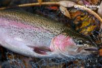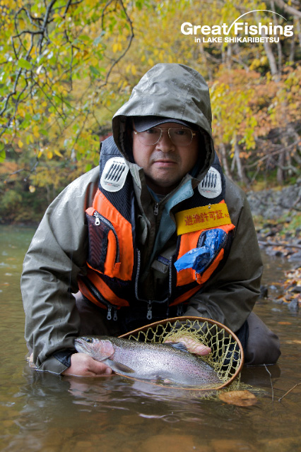 セカンドステージの魅力のひとつ「大型ニジマス」。秋のニジマスは体高が高く、抜群のコンディション。50cmを超えるニジマスのファイトは力強く、ラインブレイクも多い。捕食しているのは、掛け上がり周辺の稚魚や、ザリガニ、小型の陸生昆虫。今日も各ポイントでは(40〜52cm)のニジマスが釣れています。ヒットフライは、#16ブラックカディス、ブラックパラシュート、#8ゾンカー/パープル等。※午後から終了時間に掛けてのヒットが多いようです。