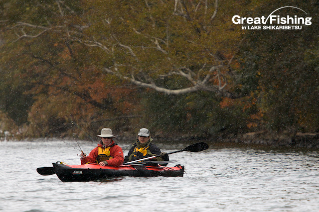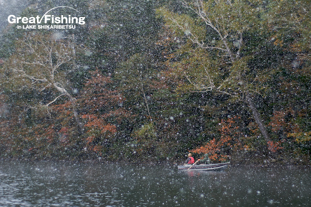 午前7時の気温3℃、天気は曇りから次第に雪へ変わり、風も強くなる…。 今日は、然別湖特別解禁が始まって以来の最高に厳しい一日。それでもゲストの皆さんは、魚を求めボートを漕ぎ、キャスティングを繰り返していました。しかし午後から雪がみぞれに変わると、心折れて早めに終了する方も・・・。全体的な釣果は0〜5匹と非常に少ない結果になりました。今日最高の釣果は15匹(高木さん/帯広市)。