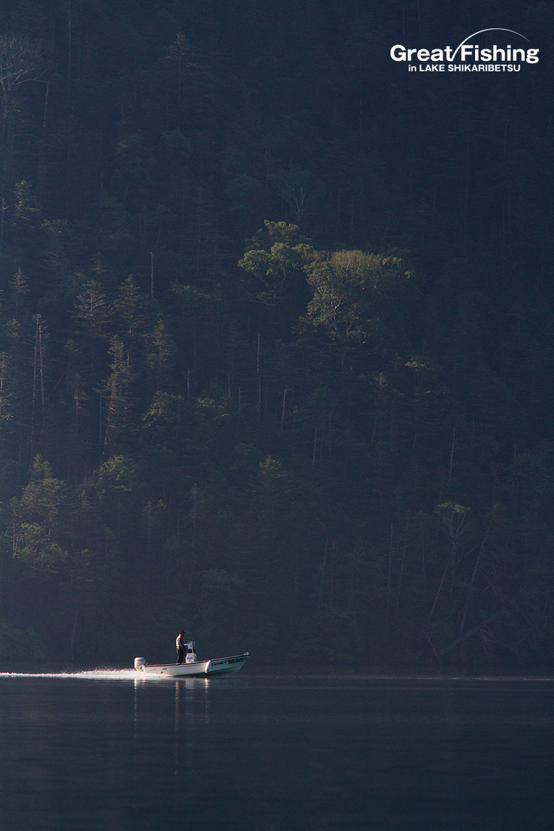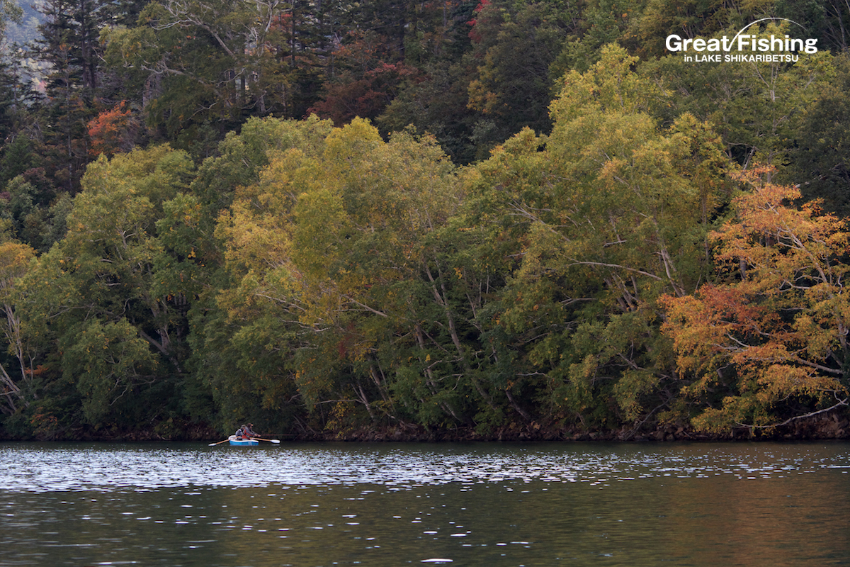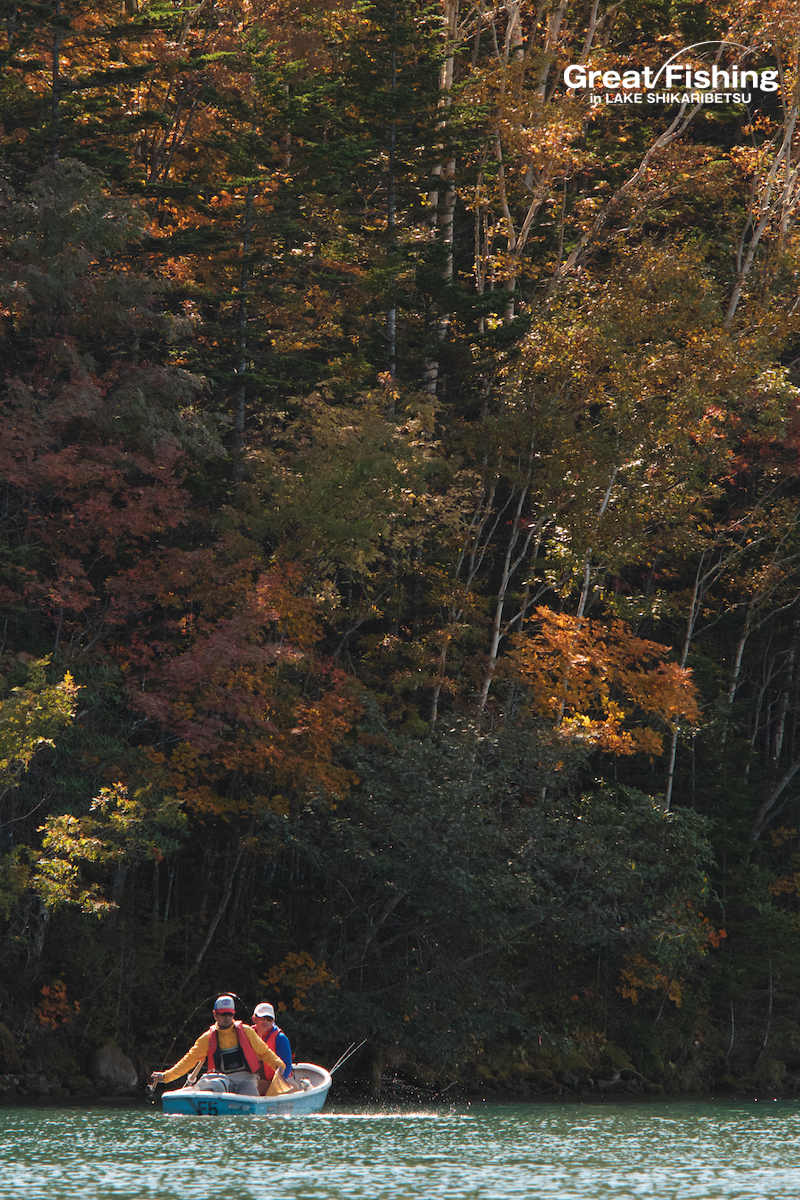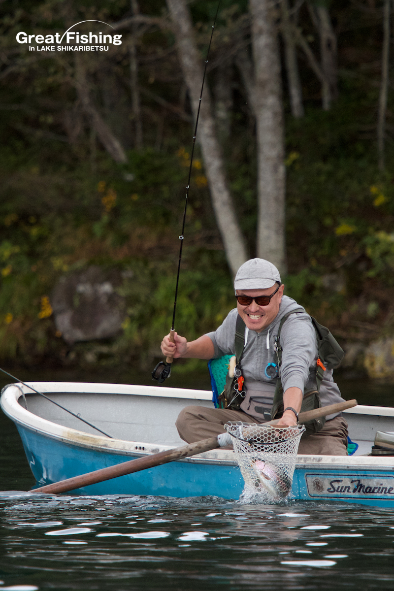 湖水の透明度は(水深13m)でとてもクリアで、深いレンジ(10m〜14m)でヒットするミヤベイワナの体色は、美しい「ブルーバック」。サイズは(22〜40cm)でコンディションもとても良いようです。