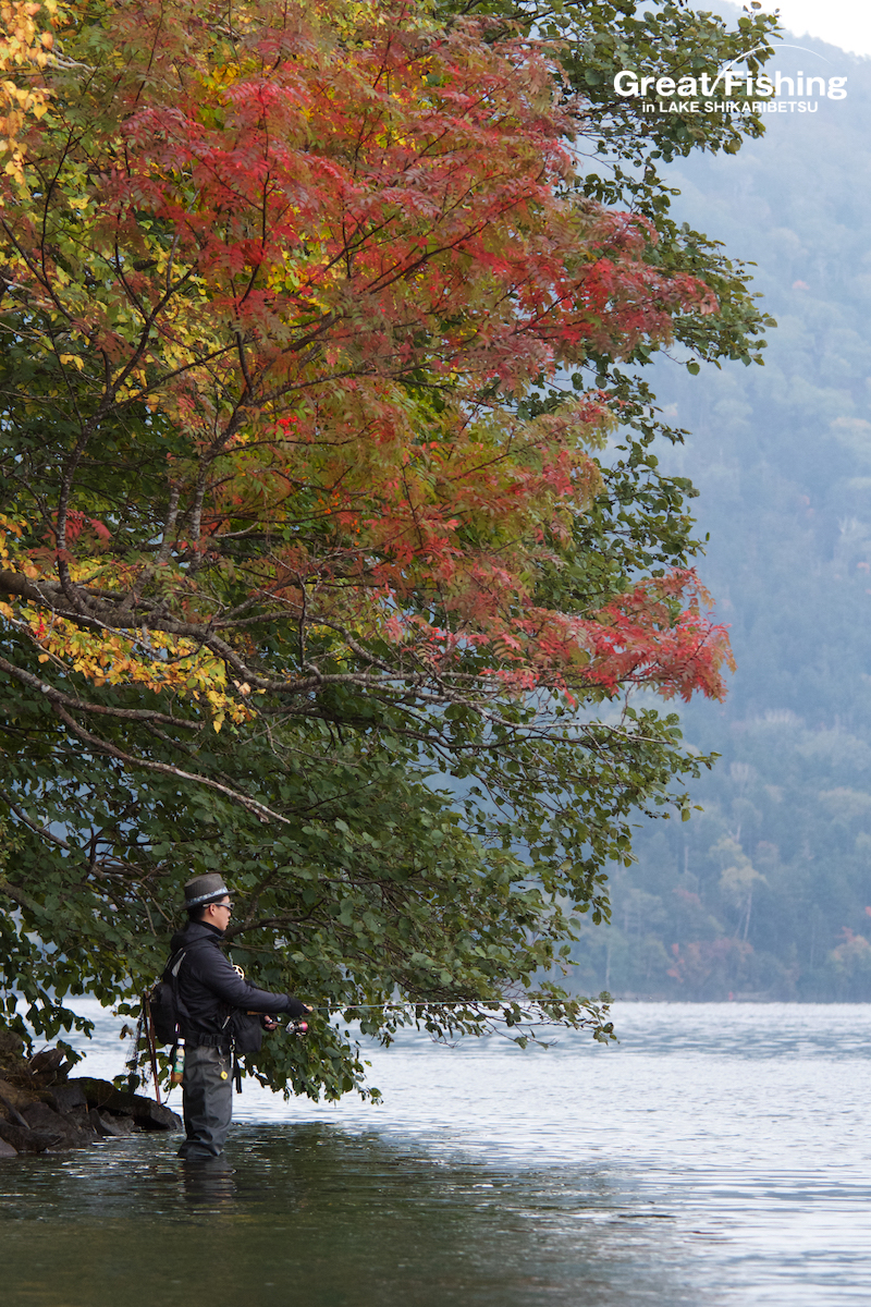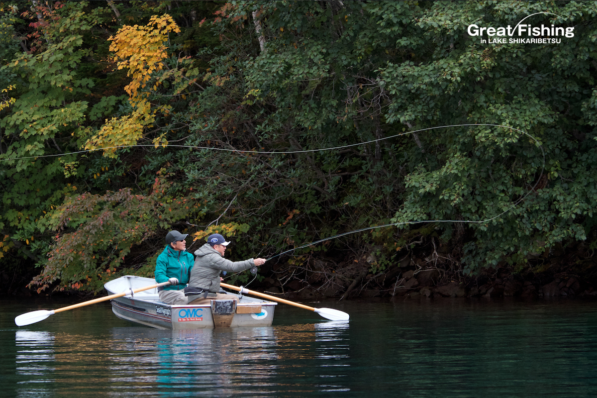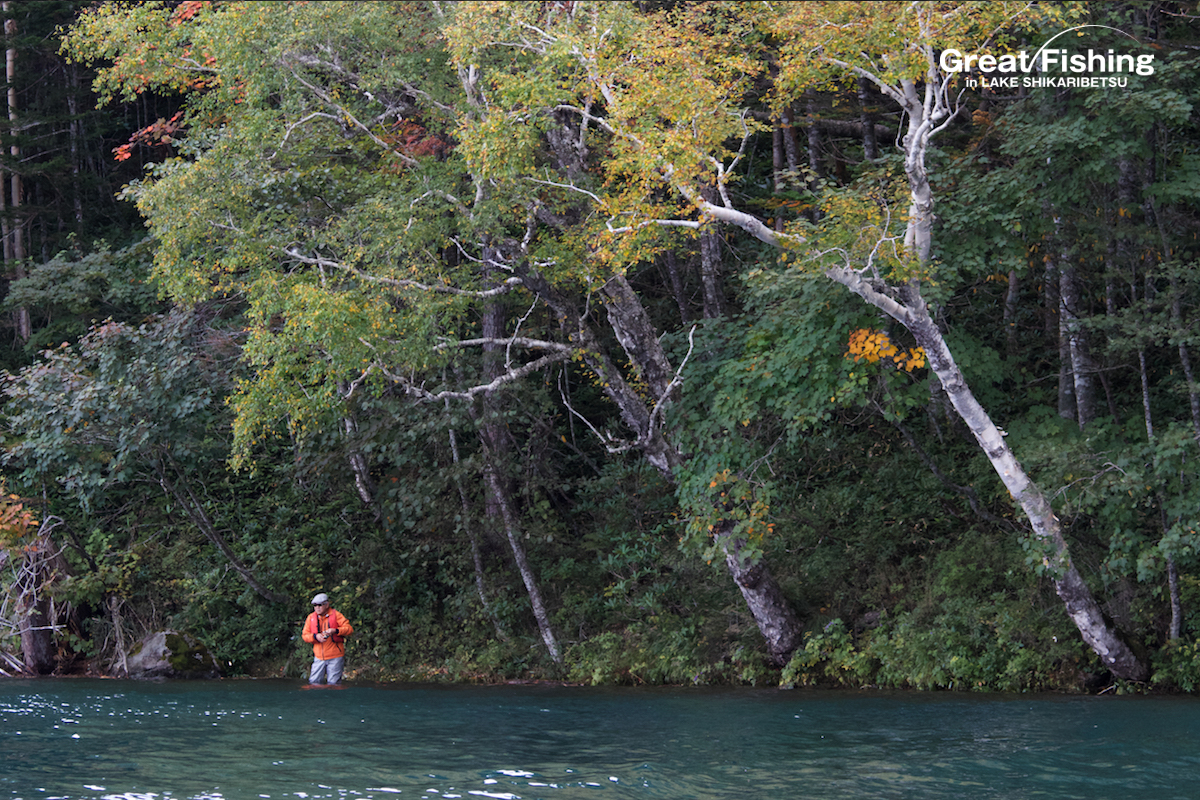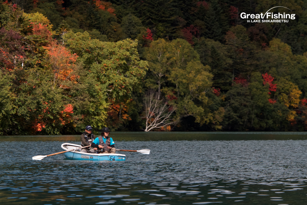 湖水の透明度は(水深13m)でとてもクリアで、深いレンジ(10m〜14m)でヒットするミヤベイワナの体色は、美しい「ブルーバック」。サイズは(22〜40cm)でコンディションもとても良いようです。