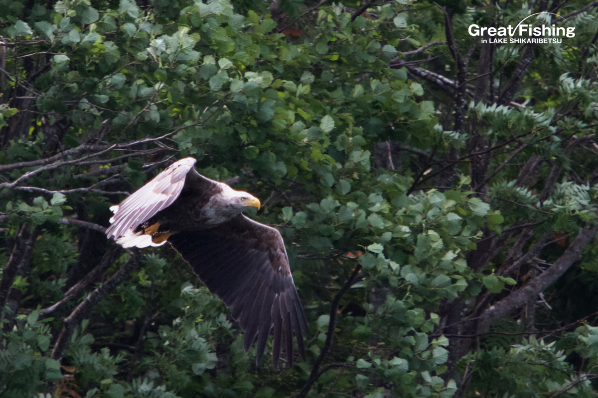 ⑬ アイサ岬、⑰ 取水口周辺では、大型ニジマス(44cm、45cm)がドライフライ(#8エルクヘヤーカディス、#16パラシュート)でヒット(高橋さん/鹿追町)。
