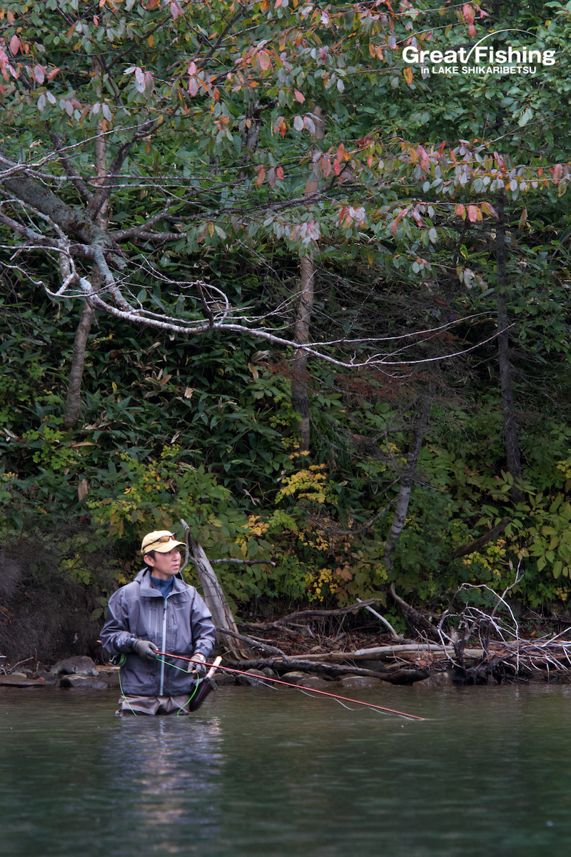 唐沢湾岸釣りエリアでは大型ニジマス(41cm、49cm、52cm)がドライフライ、ストリーマーで釣れています(谷口さん/札幌市)。