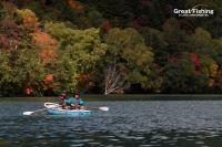 ⑭ 湯ノ花岬周辺では、大型ニジマス(50cm)がスピナー5gでヒット(神谷さん/旭川市)。⑥ シャクナゲ岬周辺ではドライフライ(#16〜18テレストリアル)で(40cm)1匹、(47cm)2匹ヒット(下田さん/長崎県)。⑮ 思い出岬周辺、⑭ 湯ノ花岬周辺、② 砂場ワンド周辺では、(32cm)2匹、(43〜49cm)4匹ヒット(魚矢さん/宮崎県)ほか。