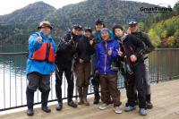 午後から気温が上昇して極小昆虫が湖面に落下。④ うぐいす湾奥のかけ上がり周辺でニジマスがライズしドライフライ(#8エルクヘヤーカディス)で(45cm)1匹、(50cm)2匹ヒット(佐伯さん/東京都)。3の湾ではライズは無く、ブラインドで岸際へドライフライ(#12ロイヤルコーチマン)をキャストして(40〜50cm)5匹ヒット(*村上康成さん/東京都)。アメリカからお越しベテランフライフィッシャーマン(Tony&Craig)は、ドライフライ(#8マシュマロ、#12スパイダー)で(40〜50cm)3匹ヒット他。
