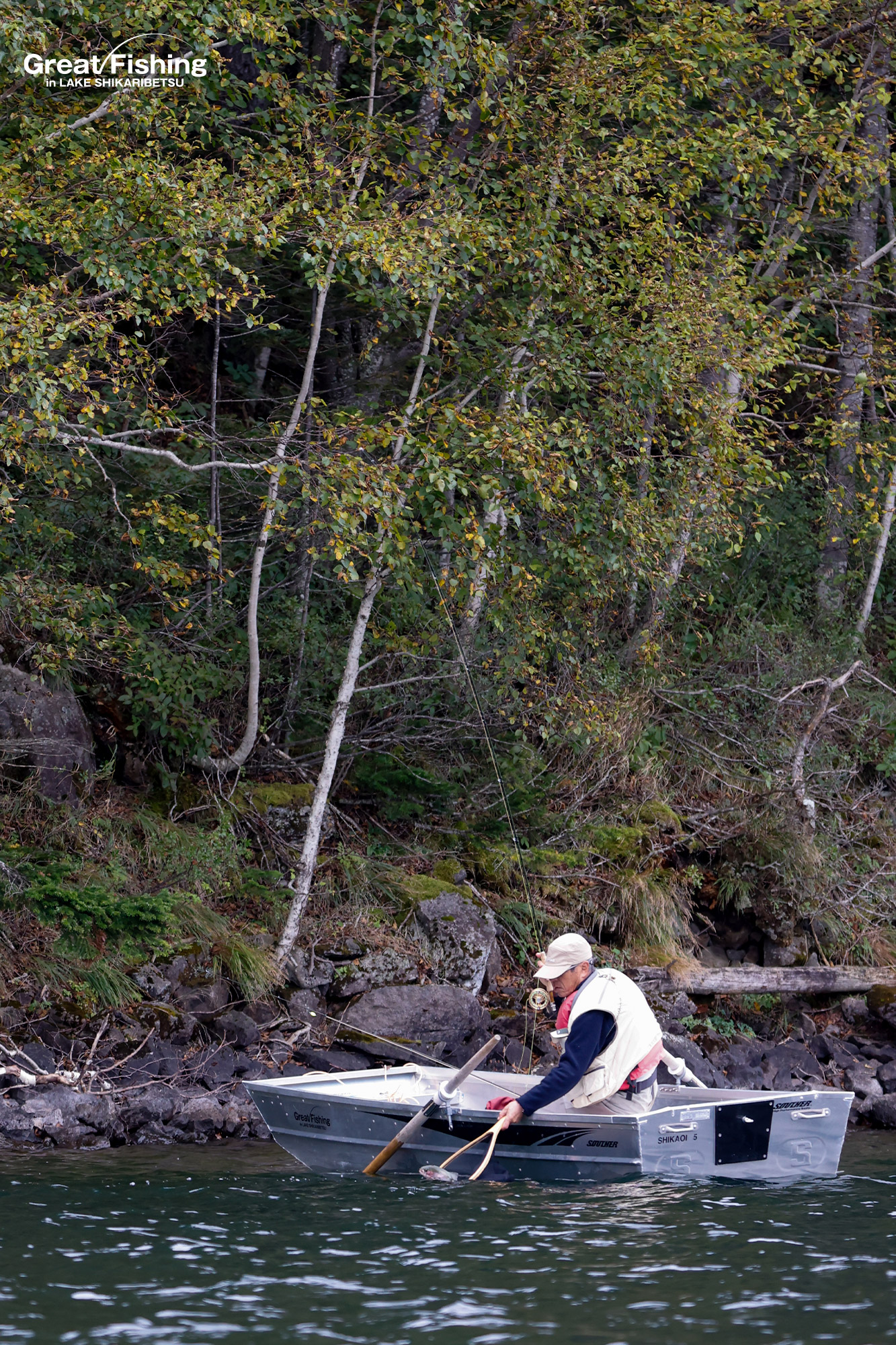 1の湾⑲⑳周辺でニジマスのライズがあり(30〜39cm)4匹(45〜55cm)3匹が(#10ビートル、#18テレストリアル)でヒット(高多さん/神奈川県)。同じく1の湾でニジマス(30cm)4匹(45〜48cm)3匹が(#10ビートル、#16CDCカディス)でヒット(林さん/仙台市)、3の湾⑮、うぐいす湾⑤⑥の岸際でニジマスのライズあり(30〜35cm)2匹、(40〜45cm)6匹が(#12テレストリアル)でヒット(佐藤さん/芽室町)ほか。うぐいす湾④では大型ニジマス(51cm)が(#16パラシュート/黒)でヒット(村上さん/弟子屈町)ほか。