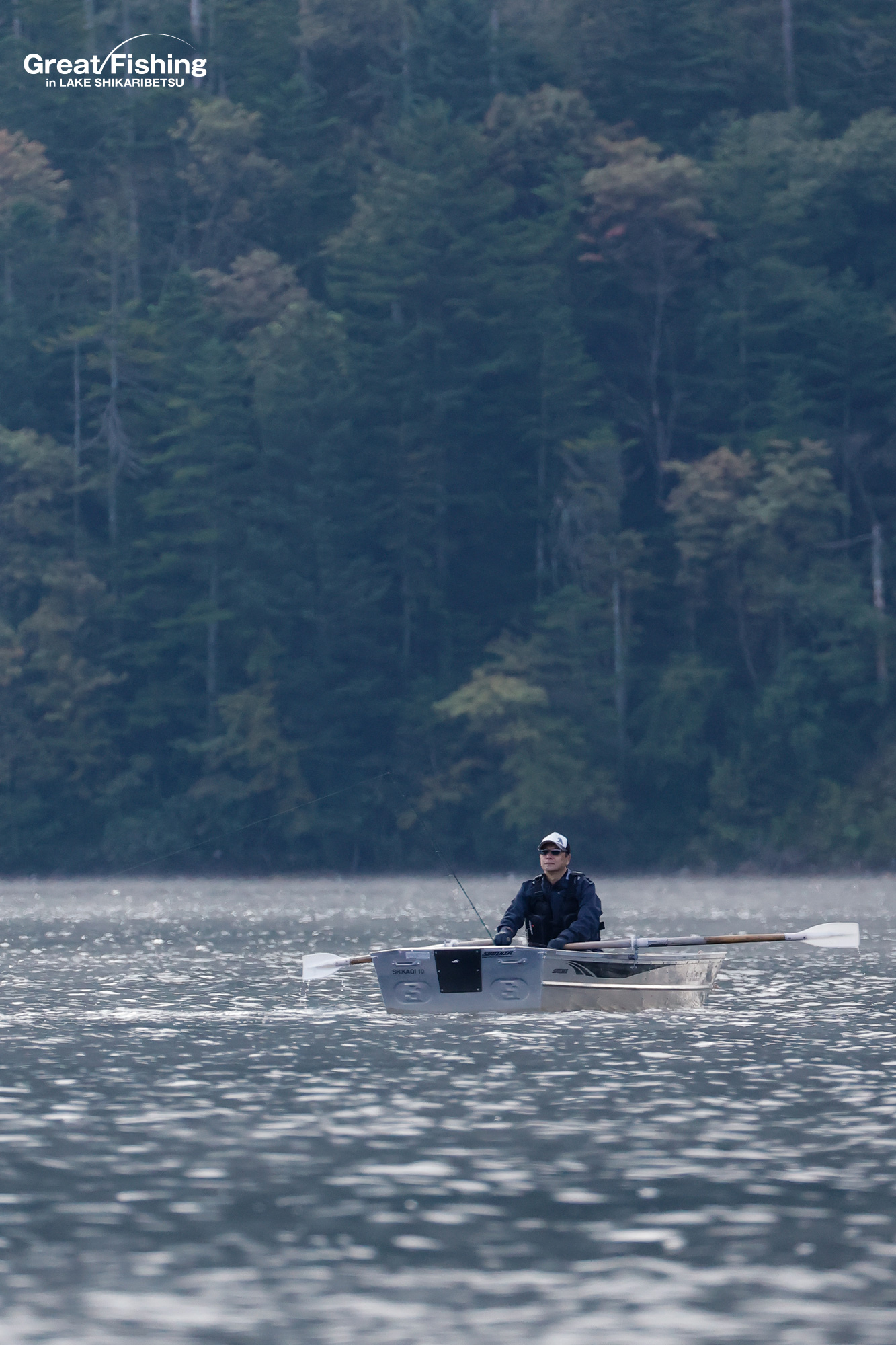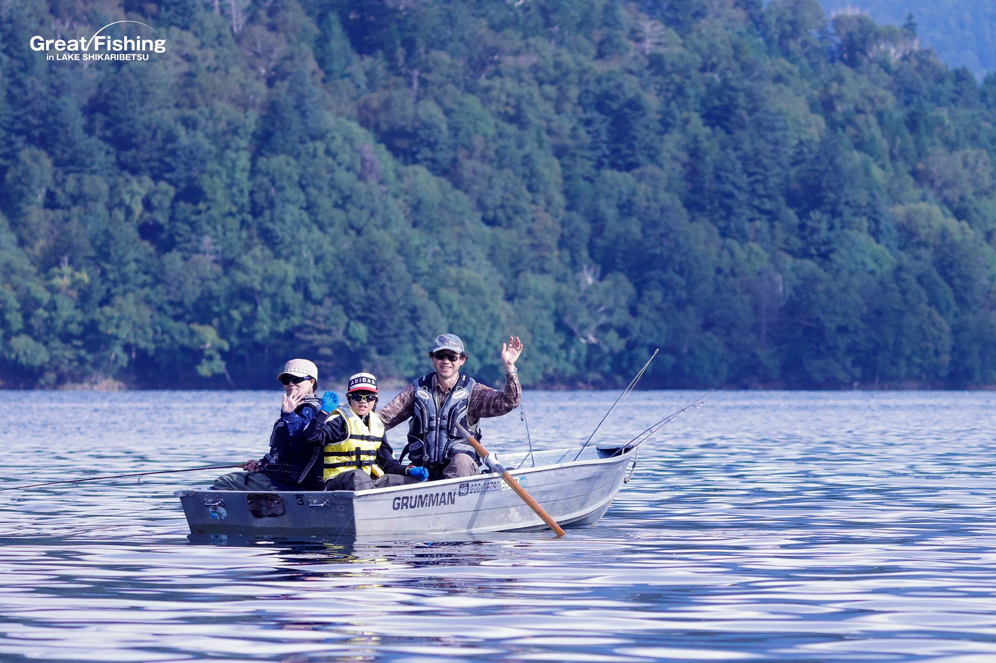 湖中央周辺㉓ではスプーン10gを60秒カウントダウンしてからスロートローリングでミヤベイワナが8回ヒット、6匹バラシ、2匹キャッチ(齊藤さん/東京都)。アイサ岬沖⑭、境界線中央周辺㉕、湖中央周辺㉓の水深(15〜20m)をトローリングしてアタリが12回程度、ミヤベイワナ(30〜40cm)3匹ヒット(宮村さん/帯広市)他。