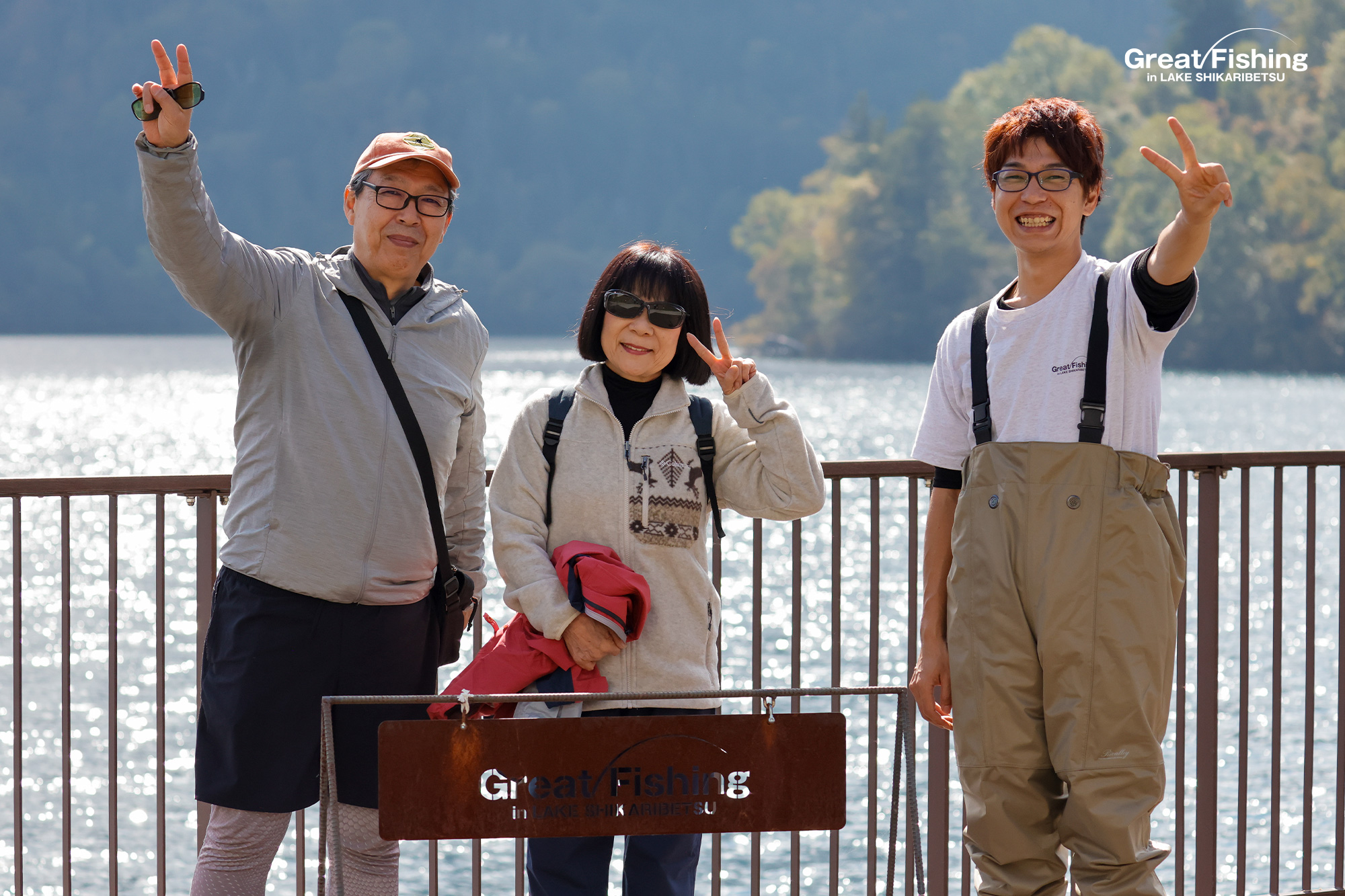 今日のビッグワン 大型ニジマス45cm(遠藤さん、向笠さん/東京都)然別湖ガイドマップ