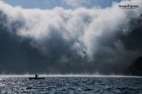 湖中央周辺㉓で、ミヤベイワナ(25cm)1匹が(シンキングライン+ストリーマー)でヒット、虹色岬③、カルガモ岬⑤で、ニジマス(25cm、35cm)2匹が、ドライフライ(チェルノブイリアント)にヒット(関さん/千葉県)。虹色岬③、シャクナゲ岬⑦、2の湾沖周辺㉒で(シンキングライン+マラブー/オリーブ)で、ニジマス(28〜35cm)3匹、音更湾沖周辺㉔で、サクラマス(30cm)1匹ヒット(金子さん/千葉県)。湯の花岬⑯、音更湾沖周辺㉔、境界線中央周辺㉕で、ミヤベイワナ(22〜26cm)3匹がスプーン12gでヒット、アイサ岬⑭で、大型ニジマス(43cm)1匹、サクラマス(30cm)1匹がドライフライ(エルクヘヤーカディス)でヒット(岡嶌さん/東京都)。