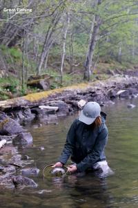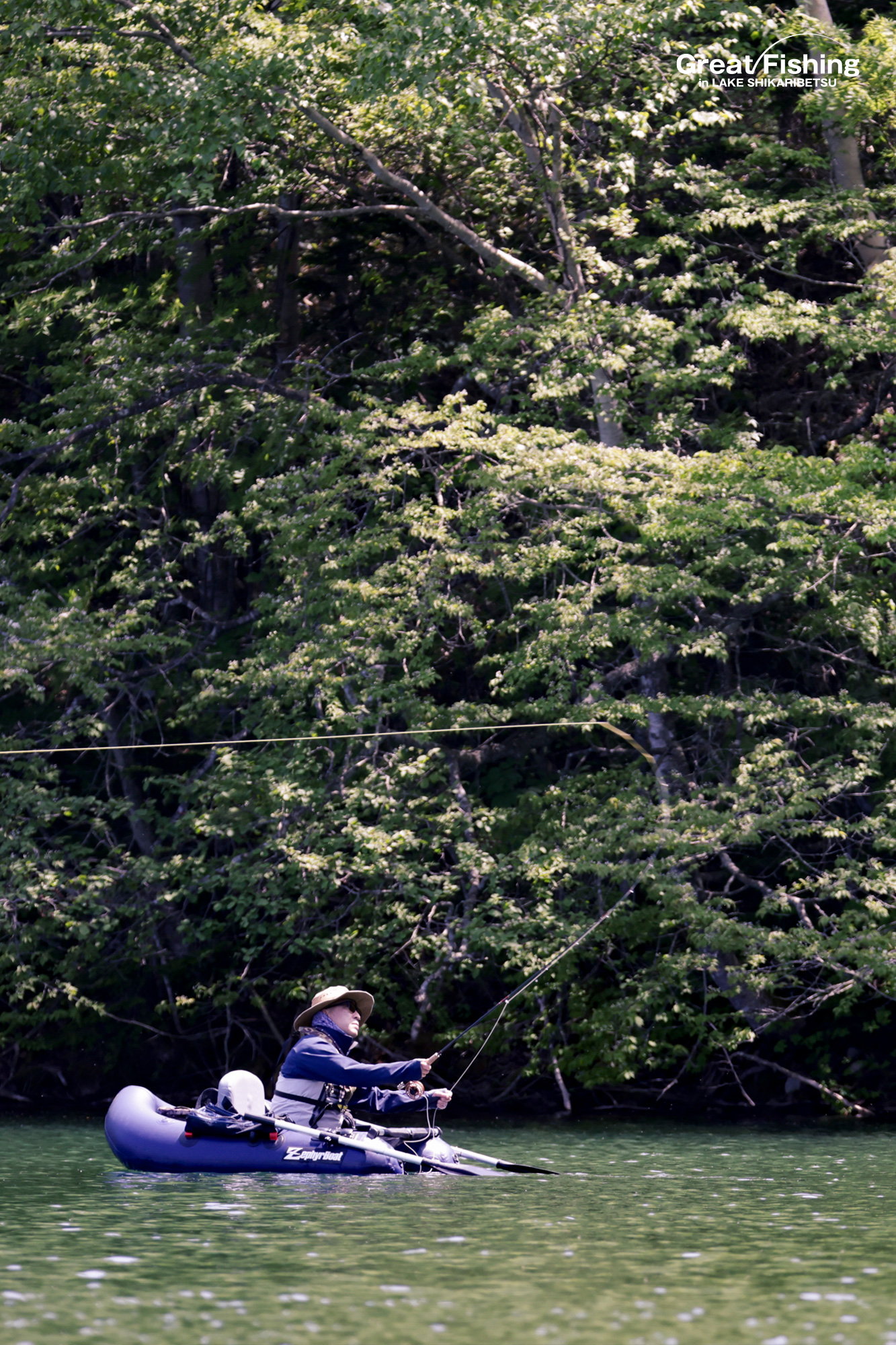 音更湾中央ガレ場⑩で(ルースニング+#10ニンフ)または、(シンキングラインタイプ3/4+#6ストリーマー)をカウントダウン50秒沈めてリトリーブしてミヤベイワナ(30㎝)、ニジマス(35㎝、51㎝)2匹がヒット(小野さん/岐阜県)他。
