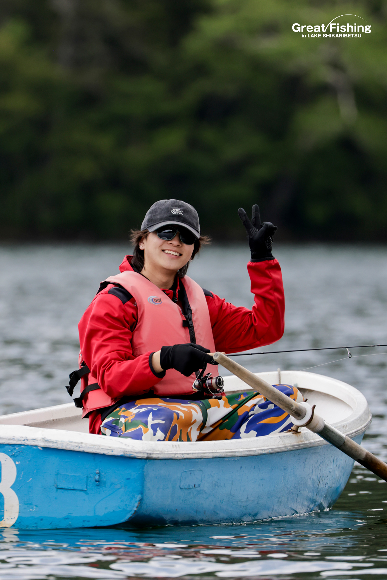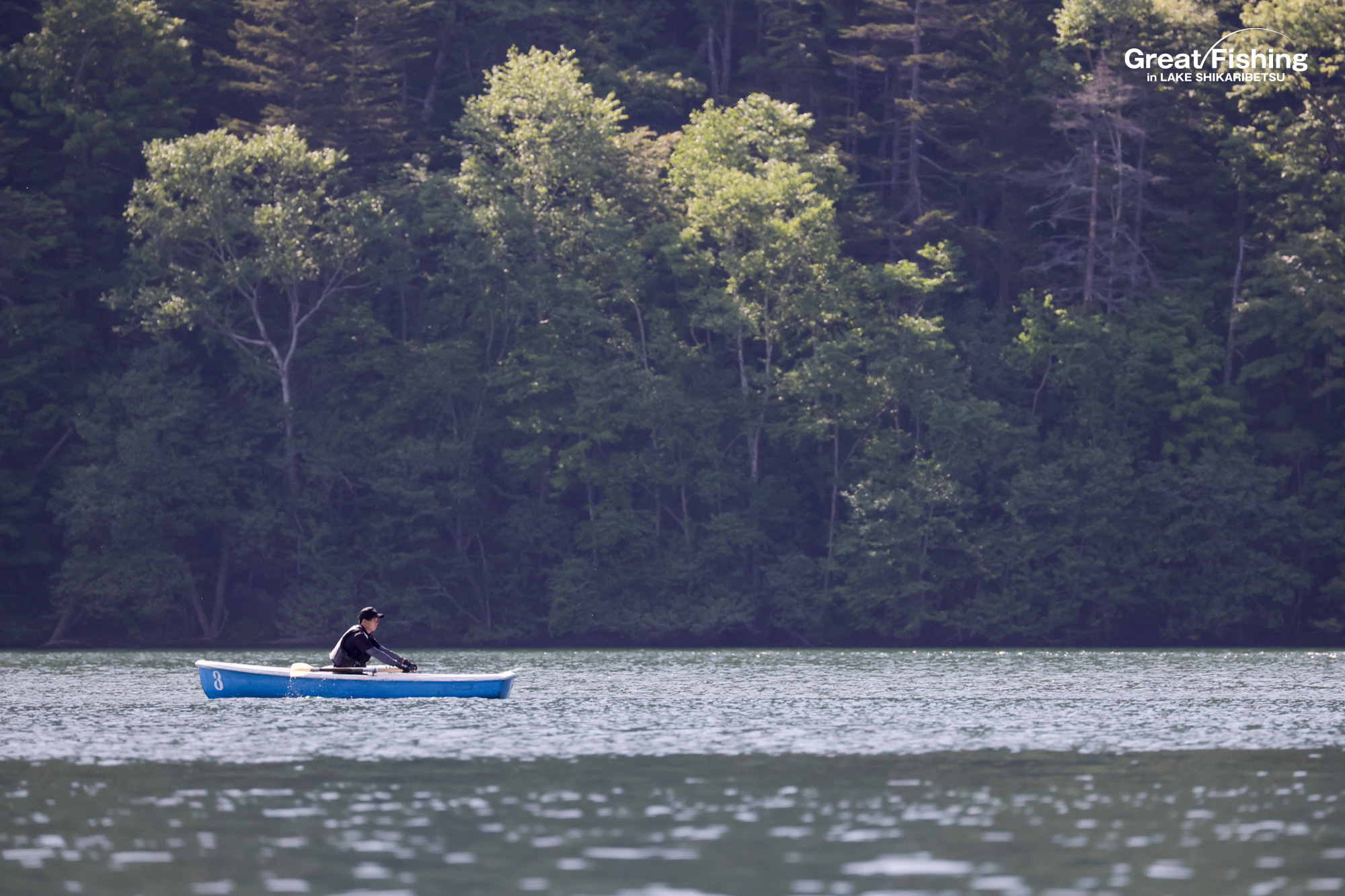 湖中央周辺㉓、虹色岬③とシャクナゲ岬⑦の間等で、スプーン10g(アワビ/パーマーク)を水深1~3mをトローリングでミヤベイワナ(20~33㎝)14匹ヒット(香川さん/芽室町)。境界線中央周辺㉕でスプーン9g(黒/銀)を35秒沈めて水深5m前後をトローリングでミヤベイワナ(28~35㎝)9匹ヒット(上田さん/札幌市)。2の湾沖周辺㉒等でスプーン7g(グリーン/オレンジ)を5~10秒沈めて表層をトローリングでミヤベイワナ(23~40㎝)8匹ヒット(松本さん/三重県)。湖中央周辺㉓㉕等でスプーン13g(白/ピンク)をボートの上からキャスティングし10秒沈めてリトリーブしてミヤベイワナ(30~35㎝)8匹、境界線中央周辺㉕でニジマス(42㎝)1匹ヒット(吉田さん/札幌市)。