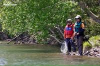 今日のビッグワン ニジマス55cm(今野さん/釧路市、光さん/愛知県)然別湖ガイドマップ