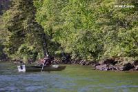音更湾中央ガレ場⑩、湯の花岬⑯等で(フローティングラインWF4+ウーリーバガー/ピンク)表層をハーリングとリトリーブでミヤベイワナ(25~36㎝)7匹、音更湾北側ワンド周辺⑪でサクラマス(46㎝)1匹ヒット(舘島さん/北見市)。音更湾南側岸周辺⑧で(シンキングラインタイプ4+ストリーマー)でミヤベイワナ(30㎝)2匹、ニジマス(30㎝、40㎝)2匹ヒット。シャクナゲワンド⑥でドライフライ(#12ジャシッド)でサクラマス(40㎝)1匹ヒット(佐々木さん/札幌市)他。