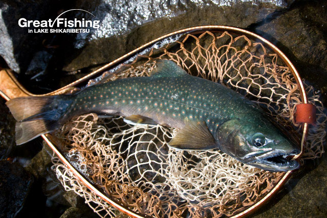 サクラマス、ニジマスの泳層は(50cm〜2m)、ミヤベイワナは(2〜5m)と少し深いようです。ルアーはスプーン(7g〜15g)でカラーは(赤/金)、(黒/金)、(ガンメタ)が良いようです。フライはシンキングラインタイプII〜IIIで(#6〜#8マラブー黒)、(モンタナマラブー)が好調。今日はポイントや時間帯で釣果にバラつきがありました。