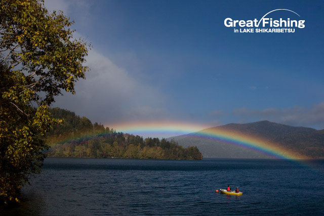 連日の低気温で然別湖の水温が13℃まで下がりました。表面水温12℃〜14℃は今年のファーストステージの釣果がもっとも良かった頃と同じ状況です。今日もかけ上がり周辺では陸生昆虫へのライズがあり、岸際ではワカサギの群れも確認しています。午後のにわか雨の時に然別湖に美しい虹が架かりました。