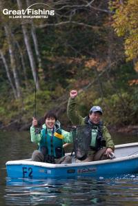 今日のビッグワン ミヤベイワナ(45cm )脇田さん/吹田市、大沼さん/帯広市然別湖ガイドマップ