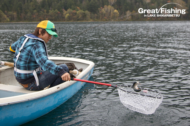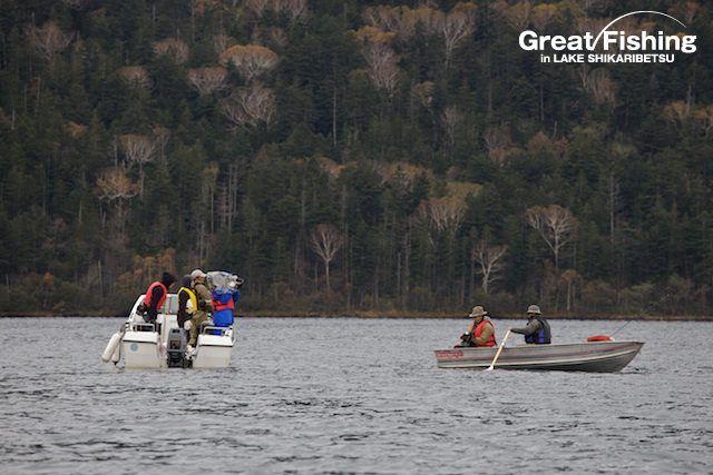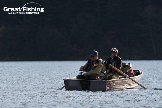 表層でライズするミヤベイワナをルアーで狙うには、(スプーン3g〜3.8g)が有効。今日一番の釣果は20匹(芳山さん/北海道大学釣り愛好会)。ヒットルアーは(スプーン2g/金)、良く釣れたポイントは虹色岬とシャクナゲ岬の中間。